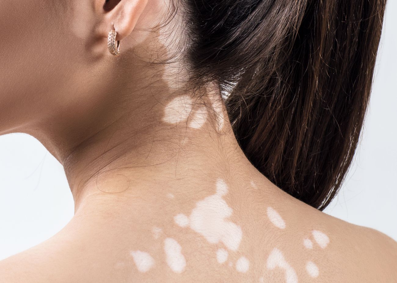 O vitiligo é uma dermatose caracterizada por manchas hipopigmentadas na pele devido perda dos melanócitos (células responsável pela produção de melanina) na área afetada.